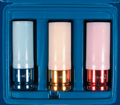 | Chrom-Molybdän-Stahl Länge 85 mm schlagfeste lange Ausführung mit Kunststoff-Einsatz (abnehmbar), zur Vermeidung von Schäden am Lack und der Felgenoberfläche 3 Radmuttern-Einsätze: 17er Nuss, 19er Nuss, 21er Nuss 1/2" Antrieb Für Pressluftschrauber und Drehmomentschlüssel € 49, inkl. 19% MwSt. zzgl. Versand Versand gratis in Verb. mit Wagenheber Lieferzeit: 3 5 Tage* Info's zu Zahlung + Versandkosten |